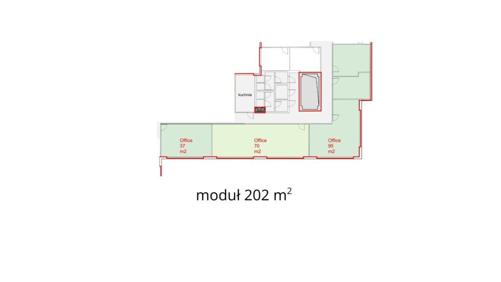 Dzięki przemyślanemu rozkładowi i elastycznej przestrzeni, moduł świetnie sprawdzi się jako biuro dla firmy doradczej, IT, księgowej, szkoleniowej lub kreatywnej agencji marketingowej.