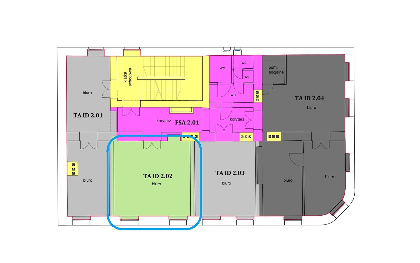 Lokal jest jasny i zadbany, gotowy do prowadzenia działalności biurowej.