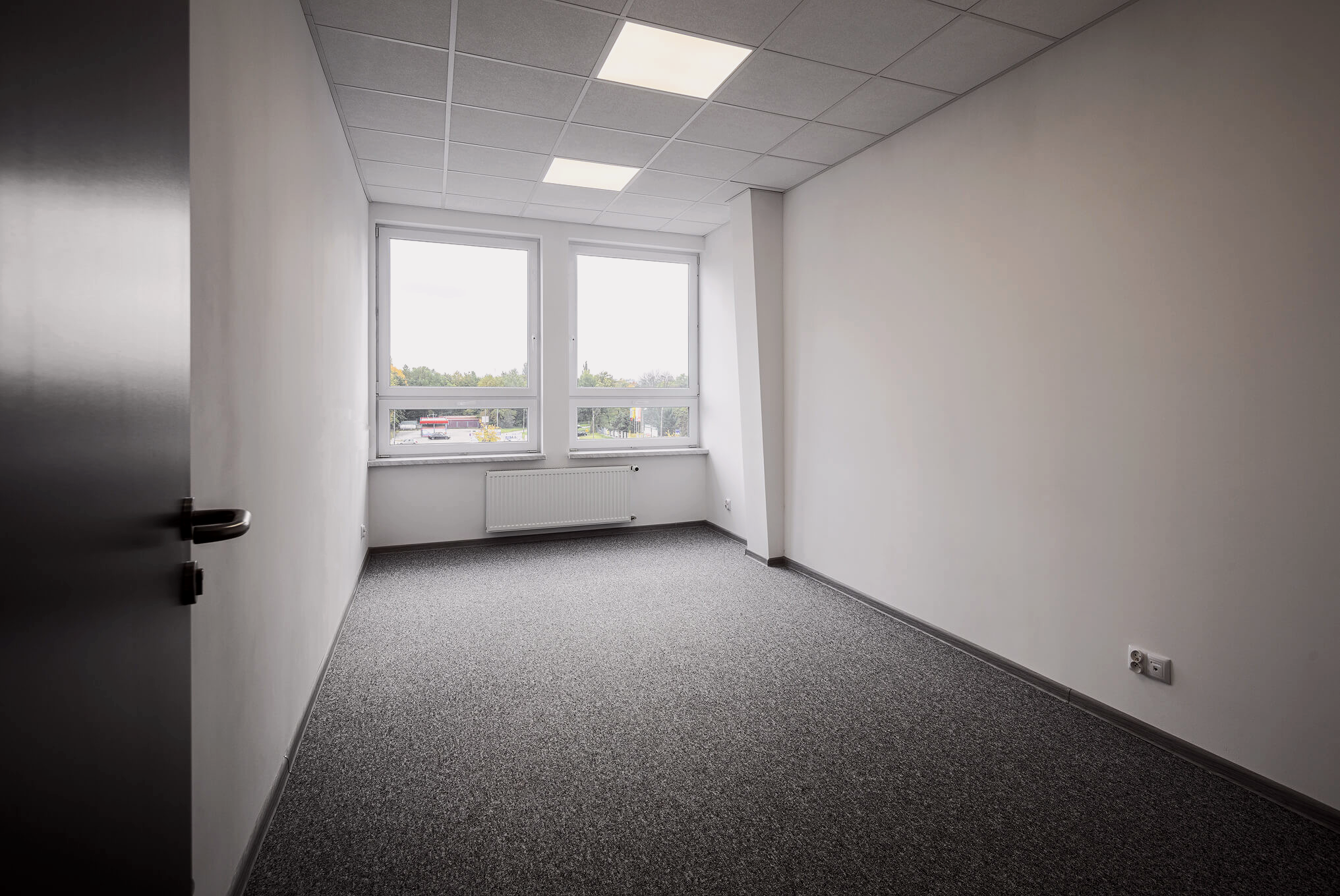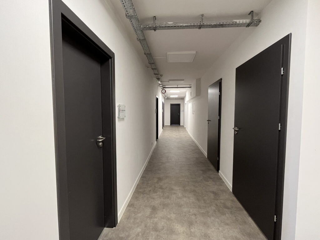 Duże okna zapewniają świetne doświetlenie naturalnym światłem, co sprzyja komfortowej pracy. Jasne ściany, praktyczne wykończenie podłóg oraz wysoki standard wykończenia sprawiają, że przestrzeń jest gotowa do użytkowania.