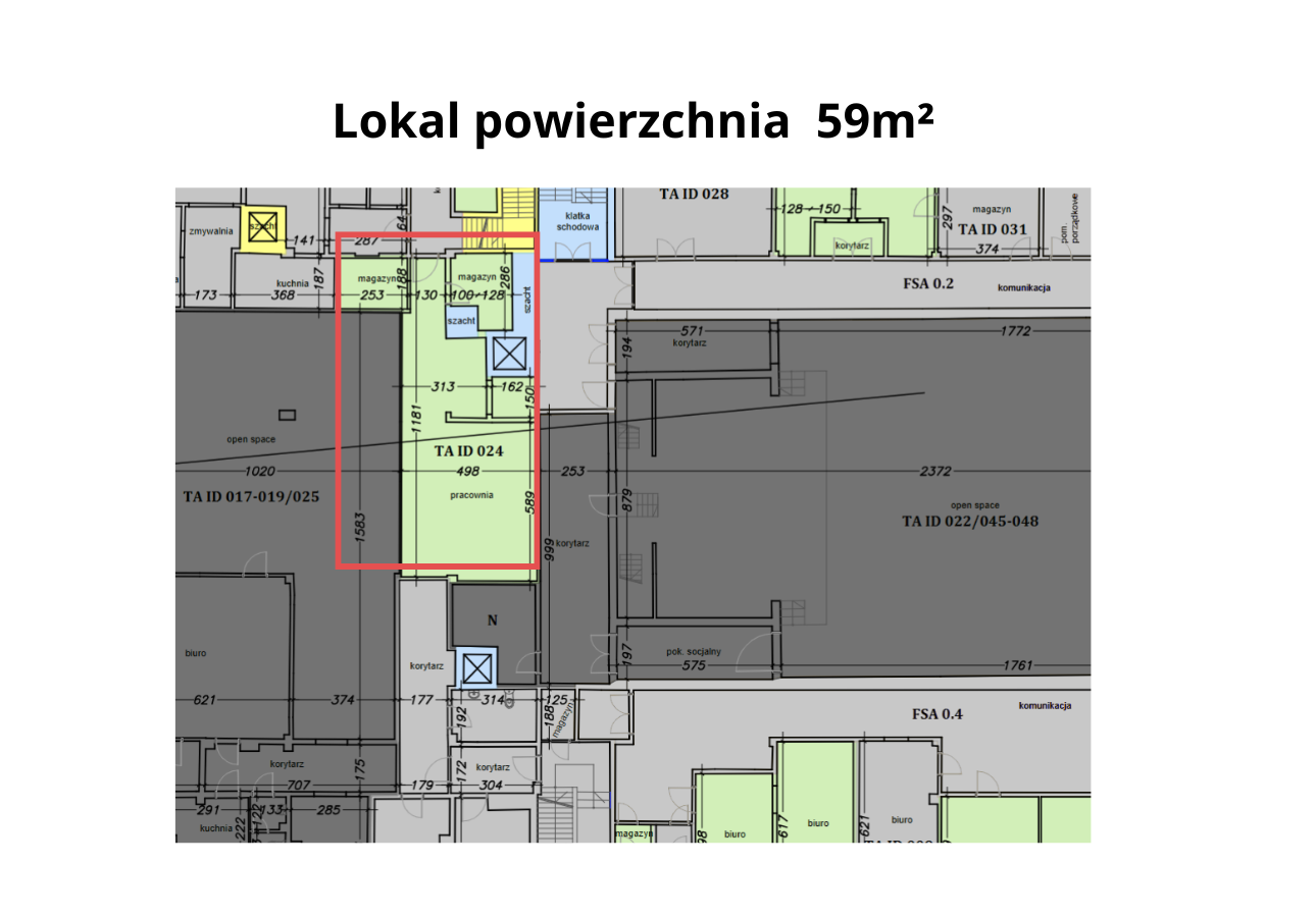 Lokal znajduje się na 7. piętrze nowoczesnego budynku TEOPARK OFFICE, co zapewnia atrakcyjny widok z okien na łódzkie lasy. Powierzchnia 59 m² jest doskonale doświetlona dzięki dużym oknom, które zapewniają dostęp światła dziennego. Wnętrze wykończone jest w jasnych kolorach, z wykładziną na podłodze. Lokal wyposażony jest w liczne gniazdka elektryczne oraz drzwi zamykane na klucz. Wysokie sufity zapewniają naturalną cyrkulację powietrza. Istnieje możliwość dowolnej aranżacji przestrzeni oraz podłączenia Internetu światłowodowego.