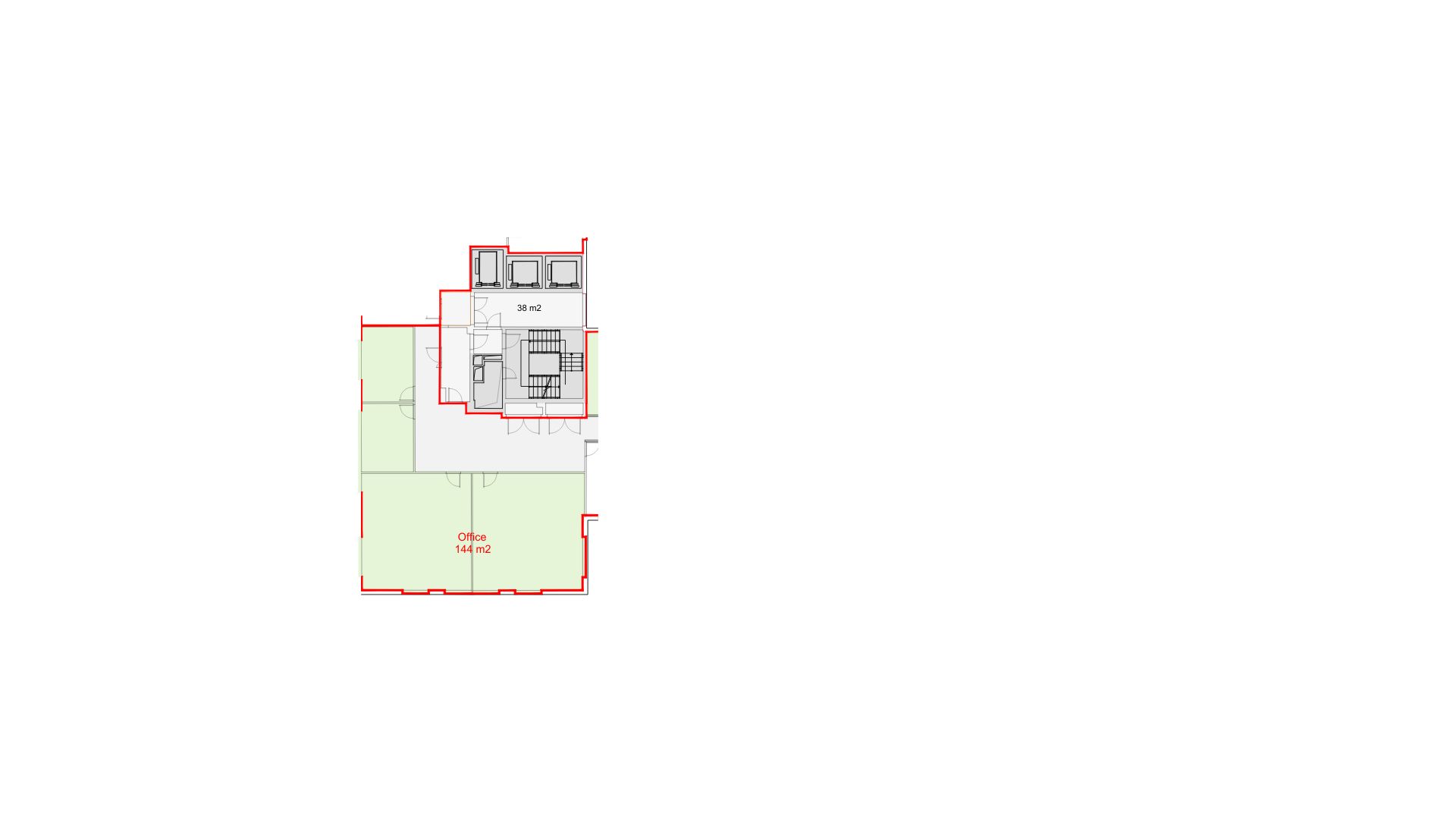 Powierzchnia biurowa 144 m² znajduje się na drugim piętrze, co gwarantuje doskonałe doświetlenie naturalnym światłem oraz komfortowe warunki pracy dla zespołu. Układ pomieszczeń umożliwia elastyczną aranżację – zarówno w formie open space, jak i gabinetowego biura.