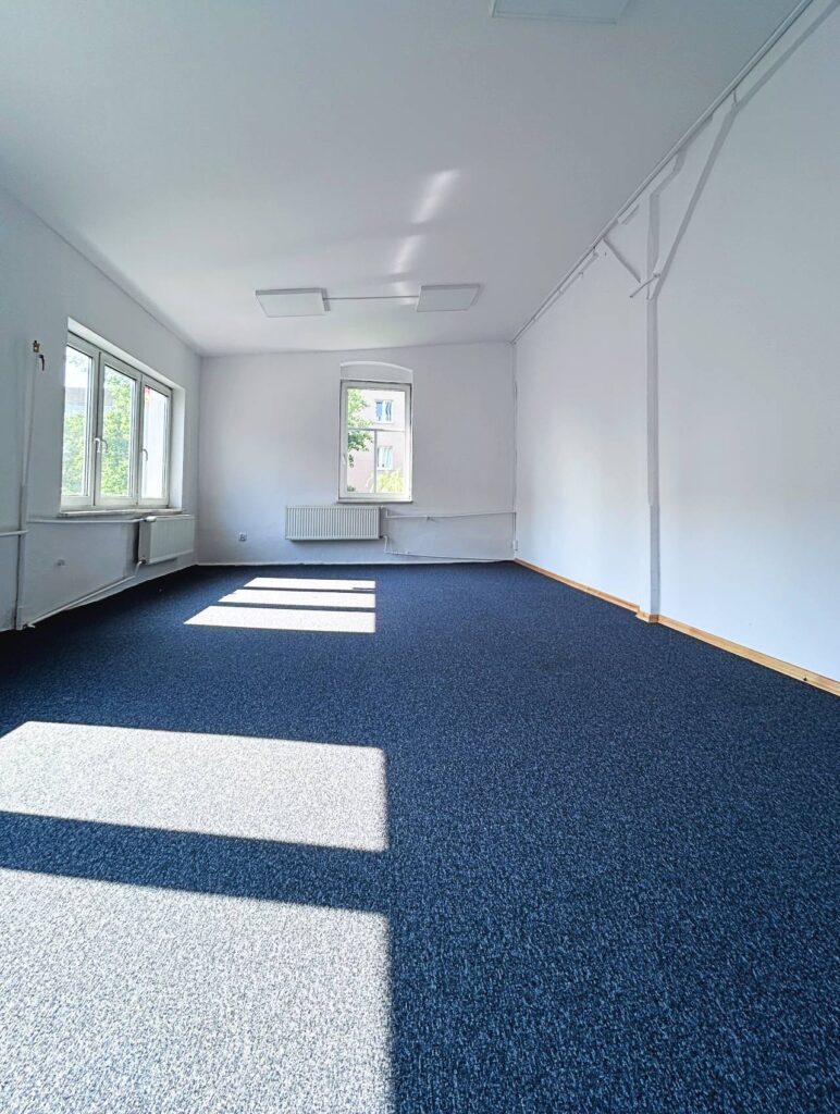 Lokal składa się z dwóch jasnych pomieszczeń, które doskonale sprawdzą się jako siedziba firmy, gabinet doradczy, biuro rachunkowe, kancelaria prawna lub lokal usługowy. Powierzchnia biura 56 m² daje elastyczne możliwości aranżacyjne – dostępne są także meble biurowe do wynajęcia.