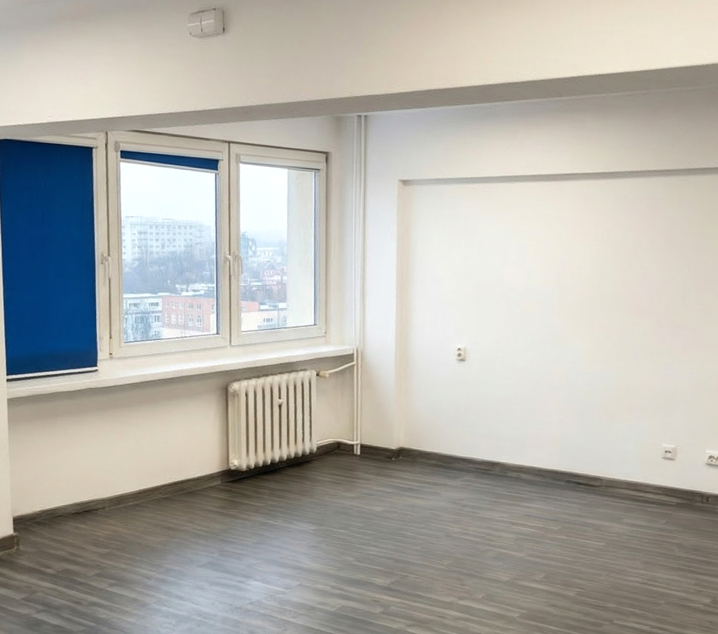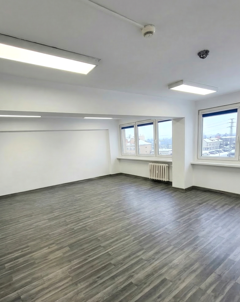 Lokal jest dobrze doświetlony dzięki ekspozycji na wschód, co zapewnia dostęp do naturalnego światła w ciągu dnia. Wnętrze wykończone jest w jasnej stylistyce – białe ściany, panele podłogowe oraz oświetlenie LED sprzyjają komfortowej pracy. Klimatyzacja zapewnia odpowiednie warunki przez cały rok, co czyni lokal idealnym jako biuro dla firmy, gabinet usługowy lub lokal na działalność gospodarczą.