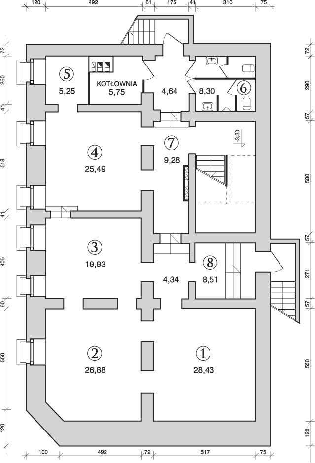•kilka mniejszych pomieszczeń (idealnych na gabinety, zaplecze lub sale usługowe),