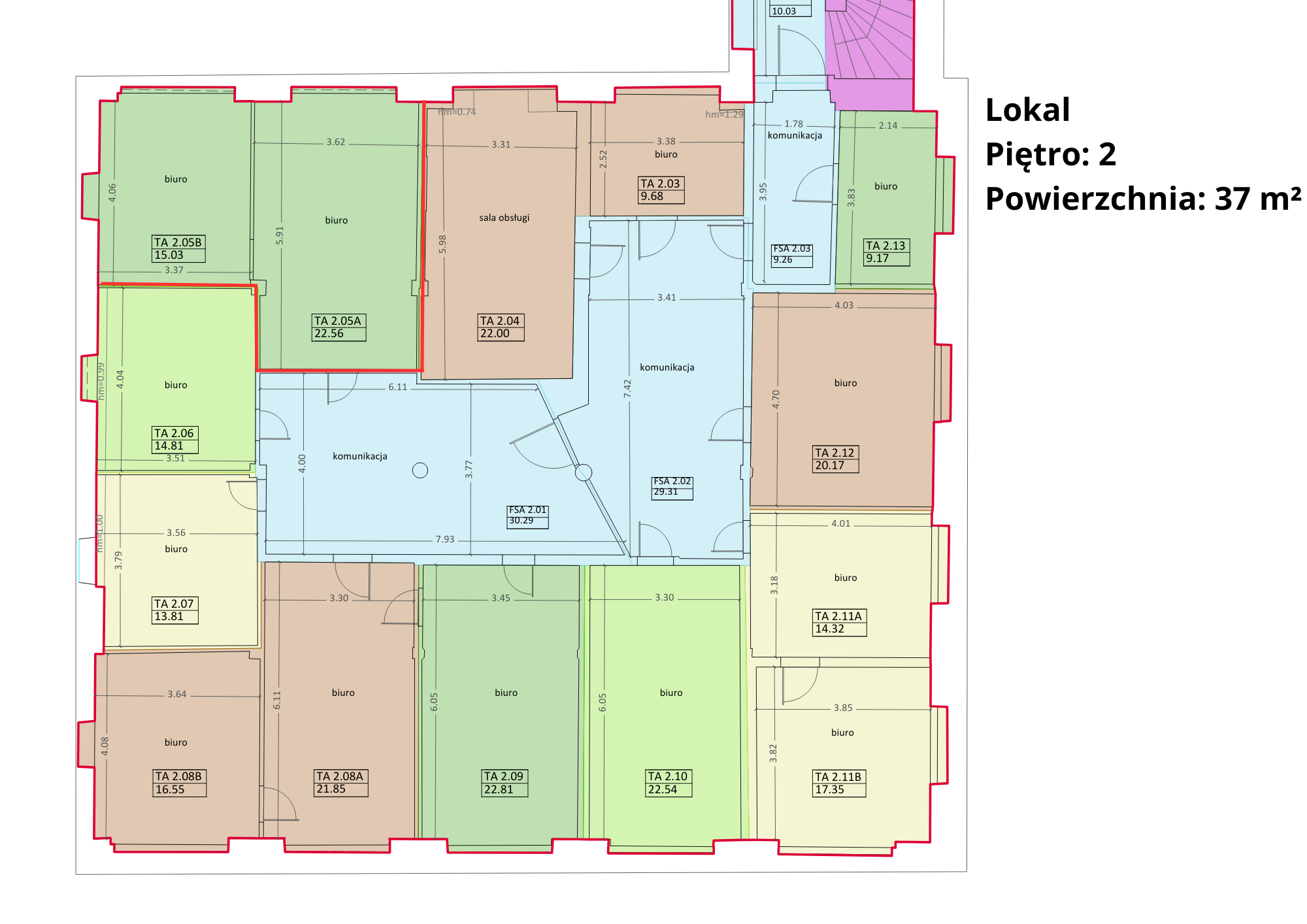 •Powierzchnia: 37,5 m²- 2 pomieszczenia